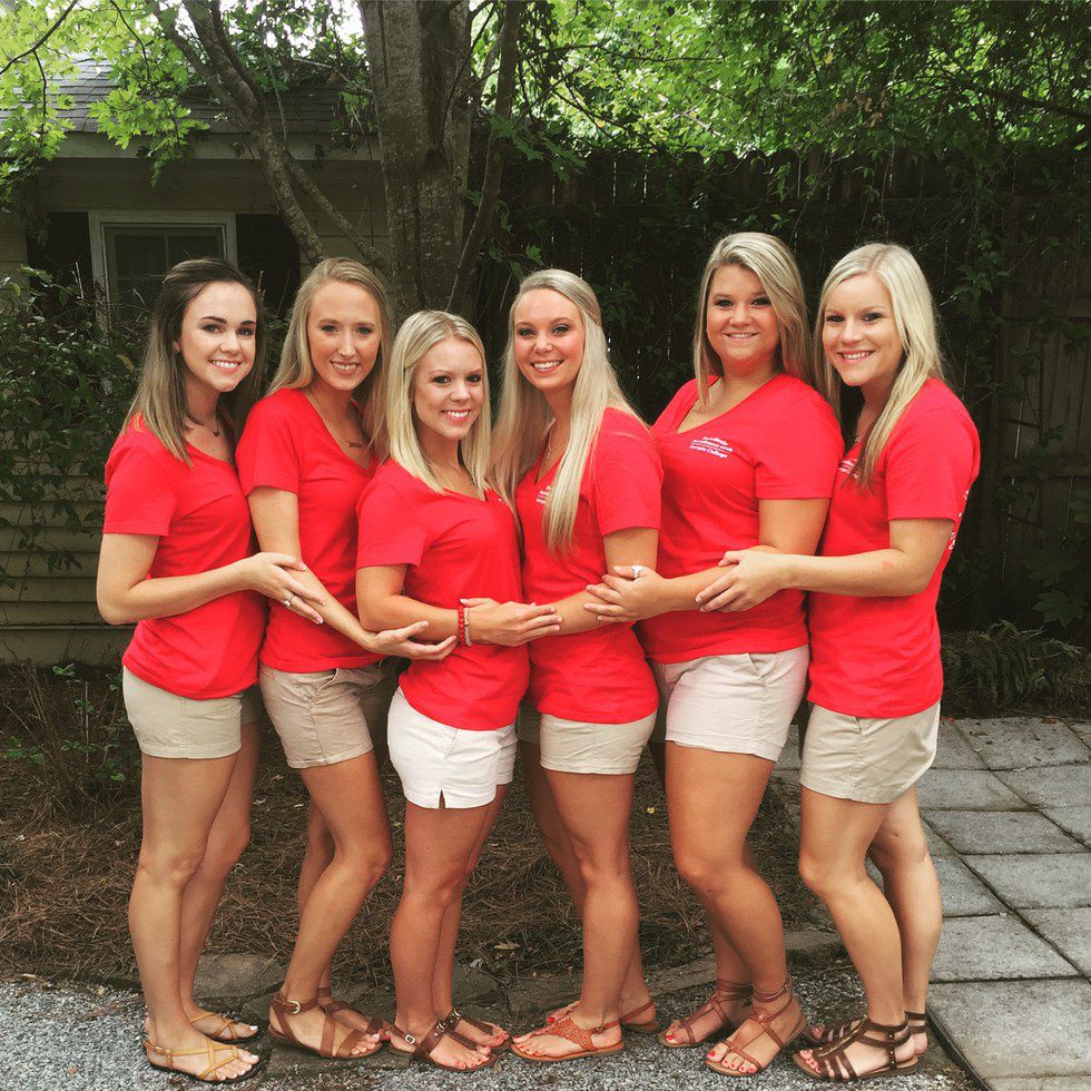 Growing up, I can remember feeling like just one of the guys all the time. There were times where I was one out of only maybe 3 girls on a tee-ball team, and the same went for my youth group and my friend group- a majority of guys and a couple of girls. Sometimes I secretly think my dad wanted me to be a boy, as he signed me up for Greg Maddox baseball camps and taught me about cars and hunting and everything else a dad should teach his....son. I don't really consider myself a tomboy after elementary school, as I became a cheerleader, debutante, and had a "clique" of my five best girl friends all throughout high school. But going from little interaction with girls to having almost 200 sisters has taught me that I still may be somewhat of a tomboy at heart.