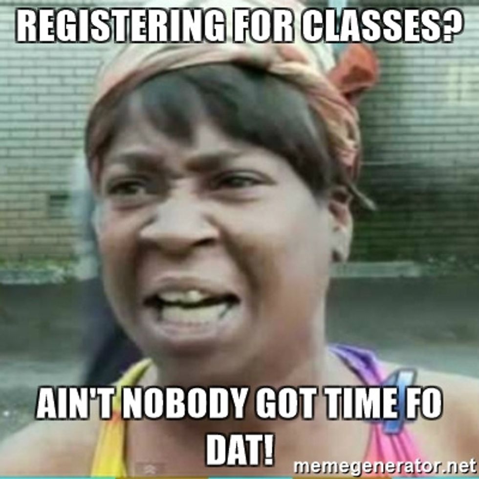 It's that dreadful time of year again known as Fall Registration. This is also known as the most stressful time in a college student's semester. Midterms? Finals?