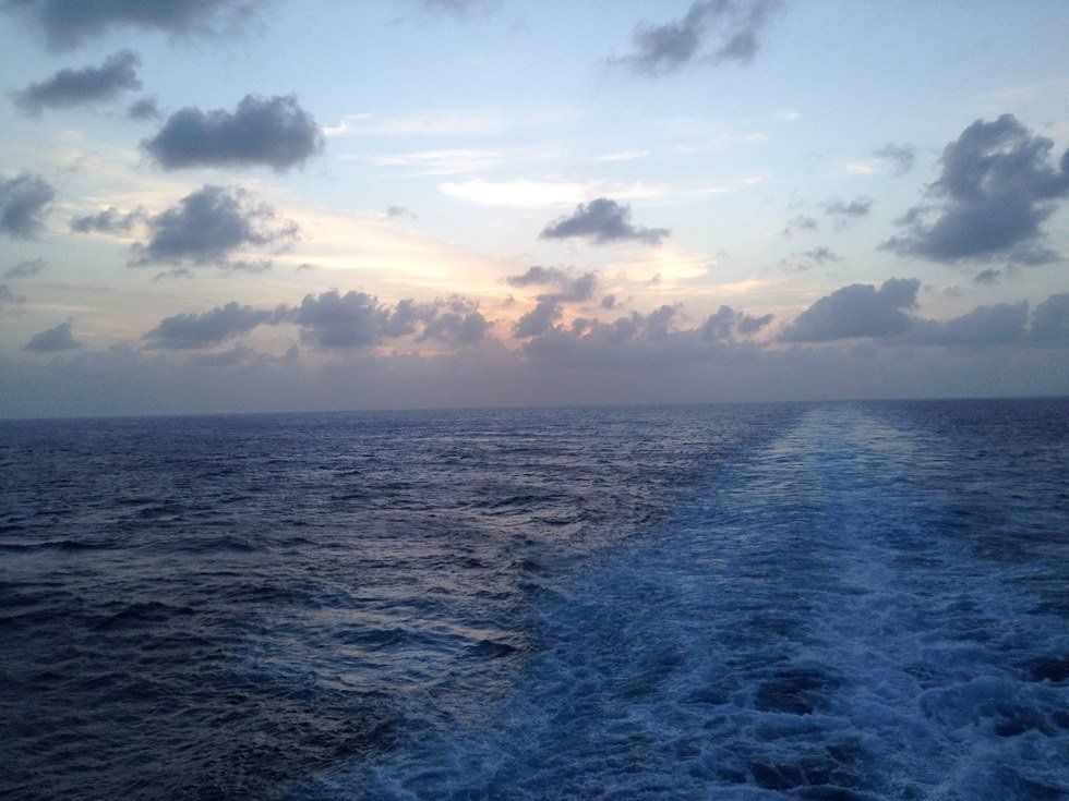 Cruises are curious because you sometimes forget that you are on the ocean at all. Unless you catch a glimpse of endless blue through the window, unless you feel the sudden rocking motion of less than glass-smooth seas. Unless you find yourself on the less populated lower deck, leaning on the handrail, looking out and below.
