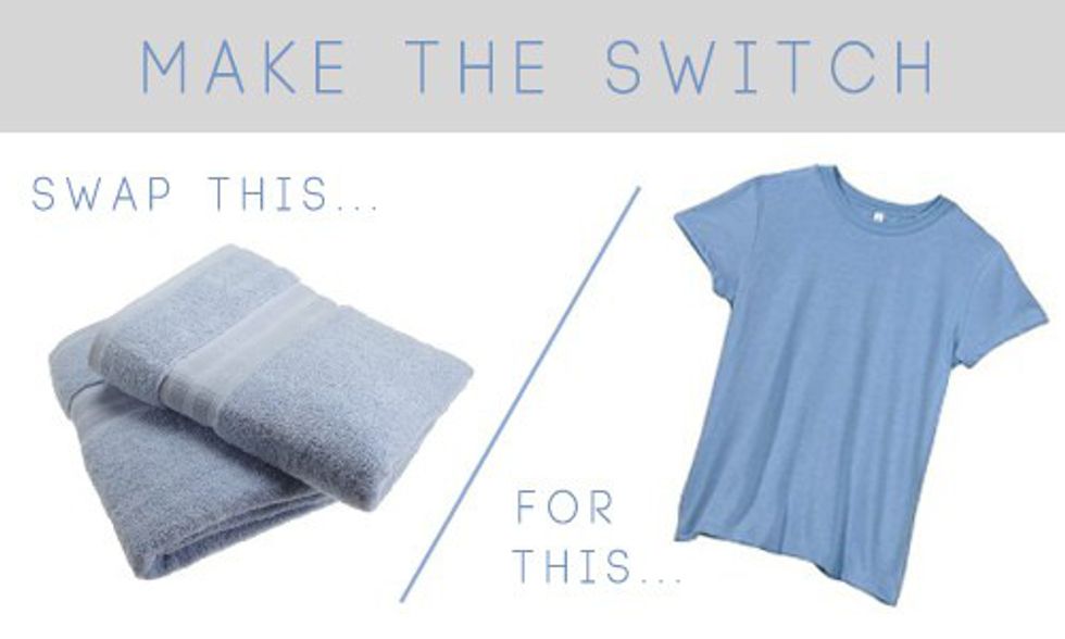 As it gets warmer, we like to indulge in some chlorine-infused water (for swimming, of course). It happens. If your hair is the type to turn green as a result, don't freak out. Just rinse your hair with club soda and it should return to normal color!4. T-shirt dry.