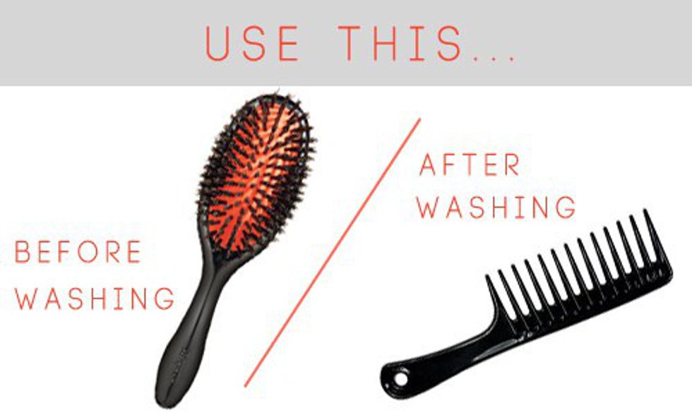 Hair is even more vulnerable and likely to break when it's wet. It's useful to use a comb on wet hair instead of a brush. Even when brushing dry hair, be gentle!