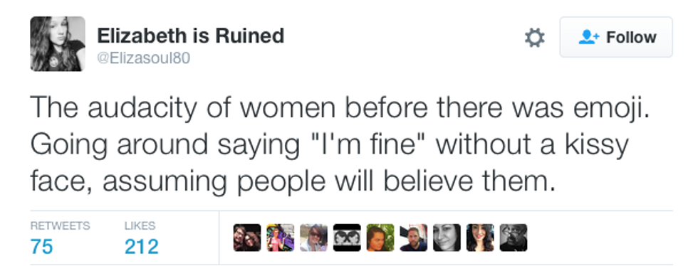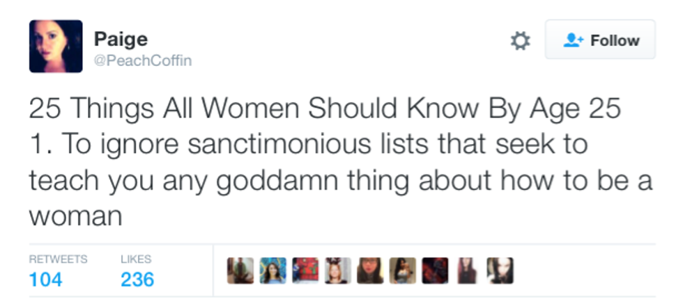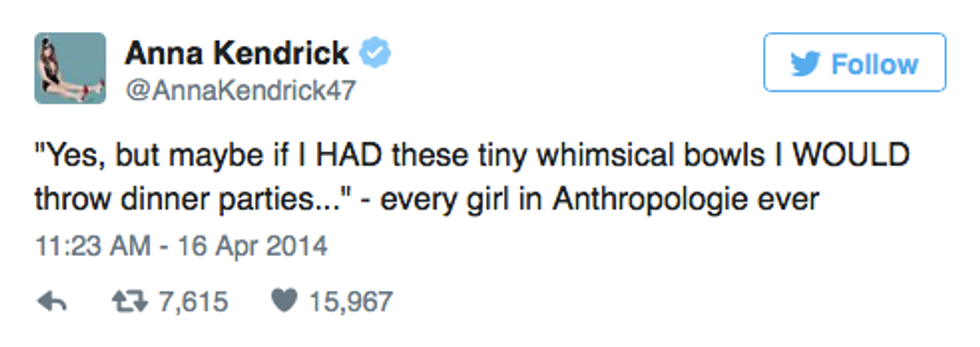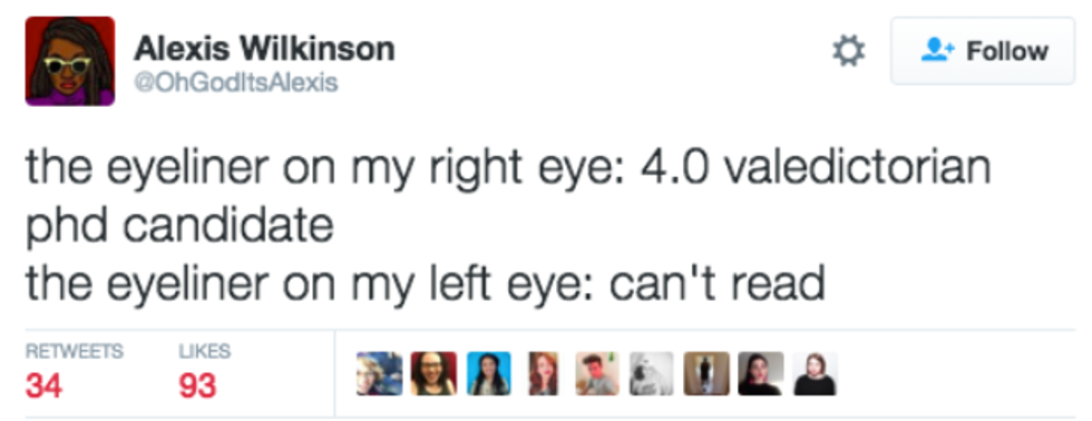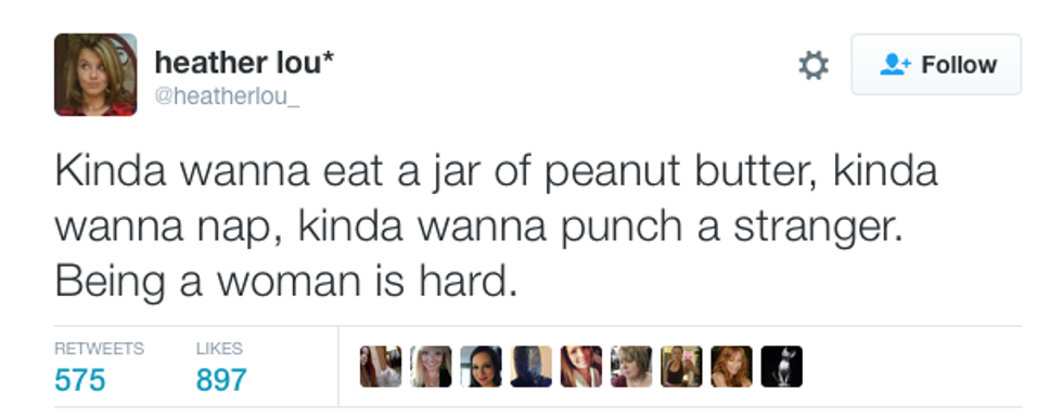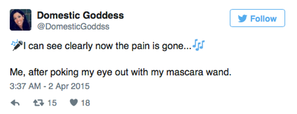 There are over 3.5 billion women in the world right now, but somehow it's still possible to find little things that we all have in common. From accidental mascara eye-poking to bad shopping habits, it's nearly impossible to escape these experiences. Don't try to sit there and tell me that you've never clicked on an article talking about something like, "30 Things Every Woman Needs to Accomplish in Her Life." Maybe it intrigued you, maybe your close friend shared it, or maybe it was the picture of a perfect model looking like she was straight out of Tumblr and you were hoping that those 30 things would be an instruction manual on how to look like her. But all those things aside, being a woman comes with unique experiences and inner thoughts that we can all laugh at (or cry at) together. No matter how old you are or where you're from, all women will probably find that these 20 tweets hit a little too close to home: