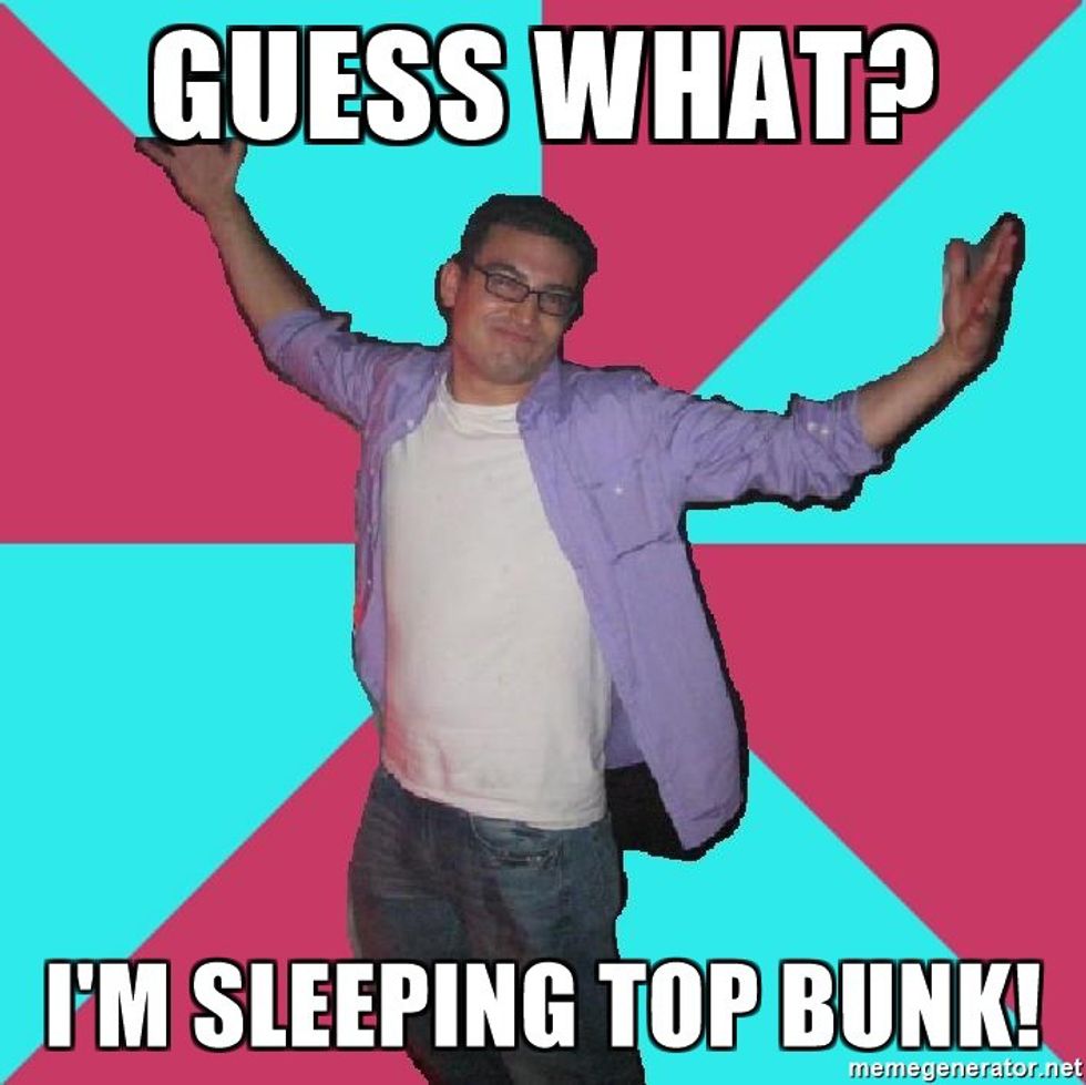 I have learned that the top bunk isn't that bad. So enjoy the college experience and get cozy.