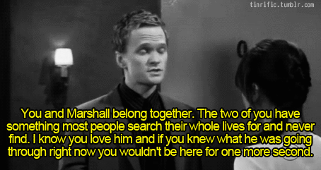 11. Give them a long speech on why they belong with Marshall from HIMYM