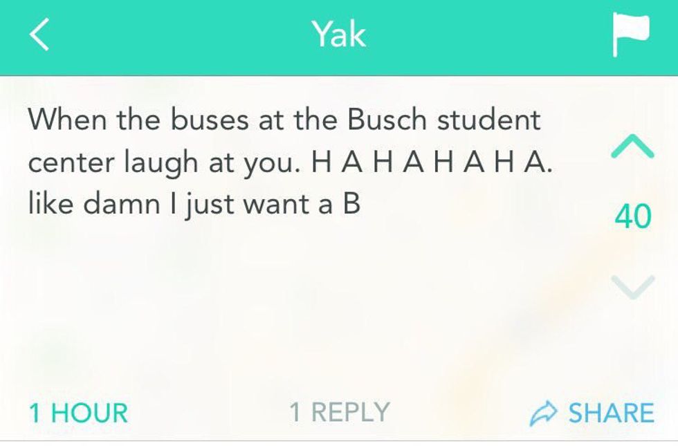 Here are the 20 best yaks from Rutgers during the Spring 2016 semester: