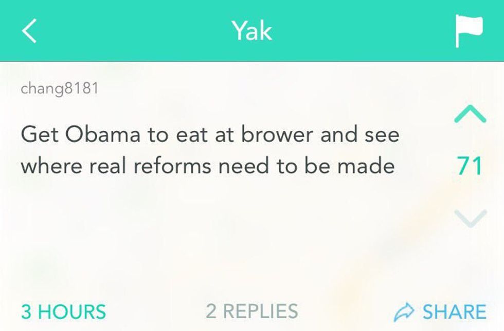 Everyone was excited to hear that Obama was our 2016 commencement speaker. Let's get him to eat at Brower Commons next.