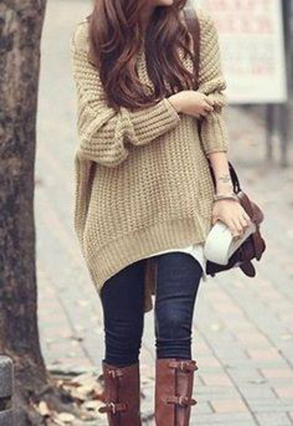 Baggy sweaters have three benefits. They're comfy, warm and cute. They go great with leggings and jeans. They're the perfect fall top because they're so easy to throw on and match with just about anything! Plus, they come in almost every color!