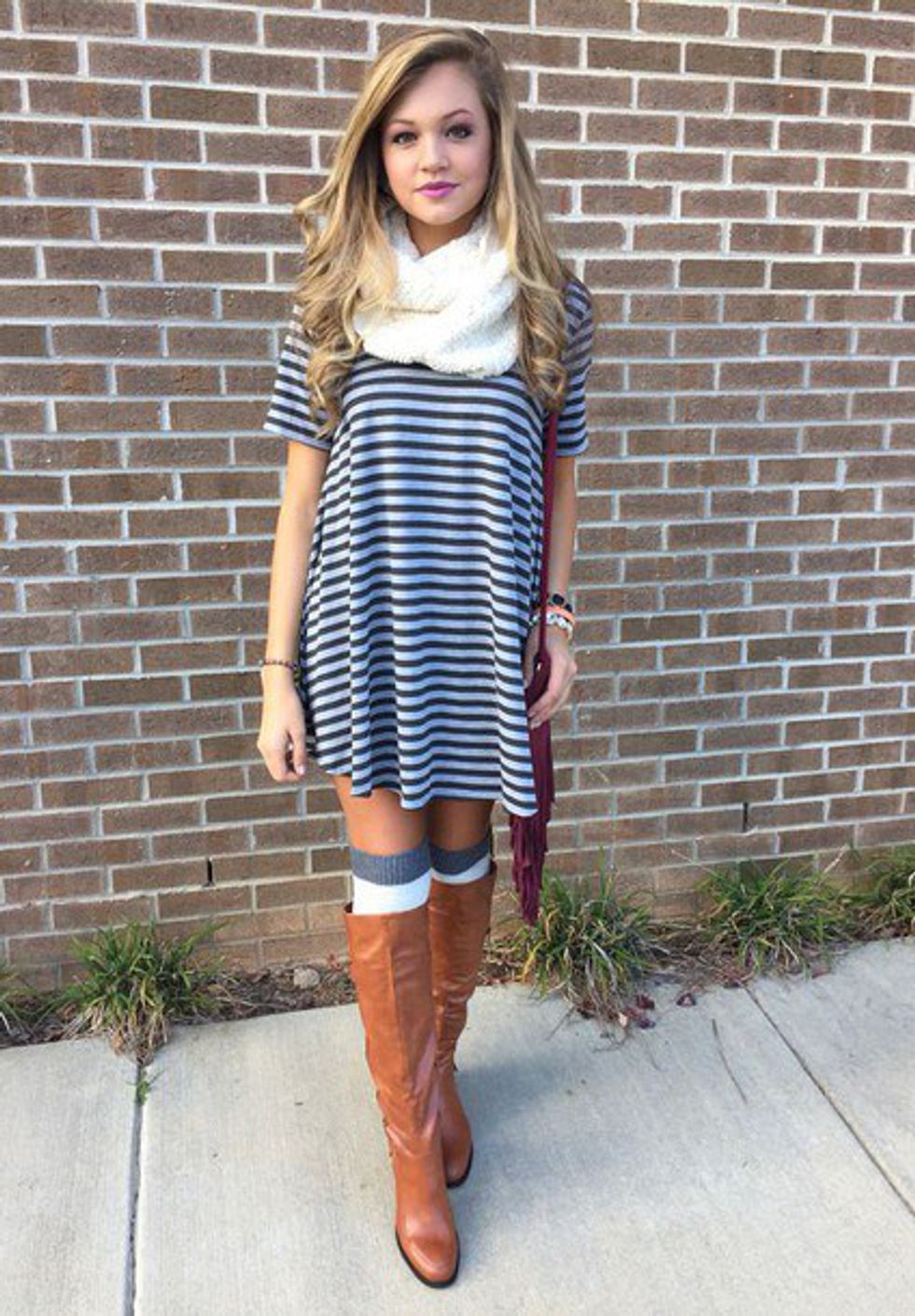 Tall riding boots are everyone's favorite. They come in so many neutral colors that you can wear them with anything! They're perfect for dresses when you pair them with high socks and they're perfect with a simple pair of black leggings too!
