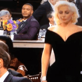 Gaga is the epitome of old Hollywood glamour in this gorgeous Versace gown. SHE ALSO WON A GLOBE FOR AMERICAN HORROR STORY. YASSS GAGA YASSSS.