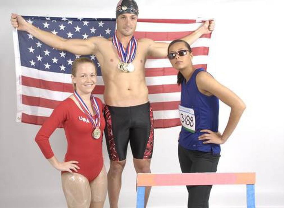 Grab your leos, swimsuits, gold medals, a flag, and your friends, and you've got a costume.