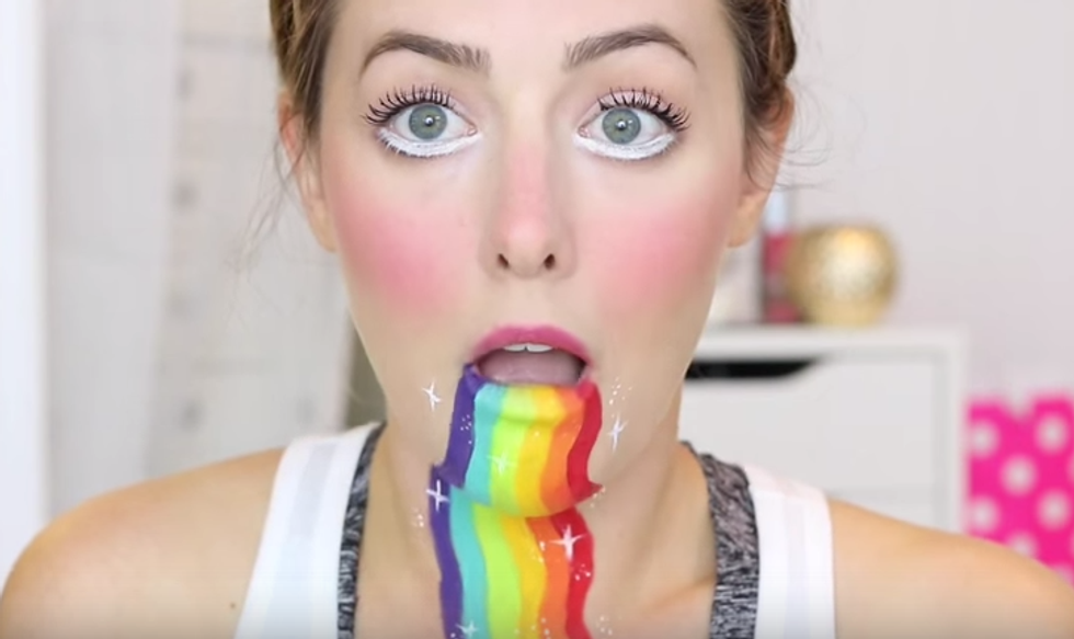 This one is super easy. It mainly requires just a couple accessories/makeup for your facial area and that’s it. Grab some felt and a headband and make ears and become the dog filter! Or, if you're more onto the artistic side, get different face paint and draw on the rainbow mouth. No matter what you choose, everyone will know what you are and it only will take you a couple minutes to complete. It's perfect for a last minute idea!