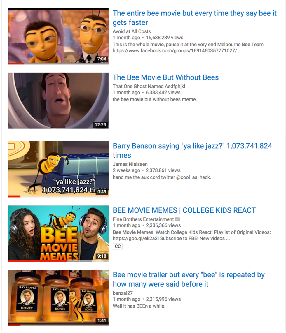 To end the year, Barry Bee Benson of the Bee Movie and Robbie Rotten of the children’s TV program Lazytown stormed the beaches of a receding politicized Internet and brought humorous nonsense back into frame. Hundreds of “Bee Movie But…” videos plagued (or blessed) Youtube, racking up millions of views, while Robbie Rotten won the “Meme of the Year” championship on Reddit.