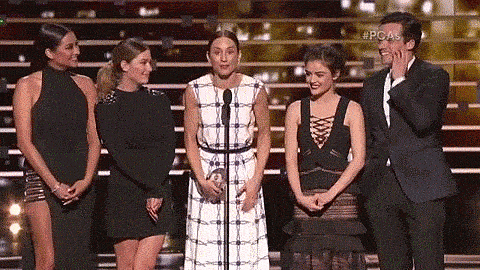So you know how a song comes on when someone’s speech is getting a little too long? Well when the cast of Pretty Little Liars went up to accept their award for Favorite Cable TV Drama, Troian Bellisario was not so happy when they began playing the music. Bellisario flipped off the camera and said, “It says please wrap it up, so no, I’m not going to wrap it up because I’m talking about the fans and you are the reason that we are here.” Feisty, but that song was not going to stop her from letting their fans know how much they mean to them.