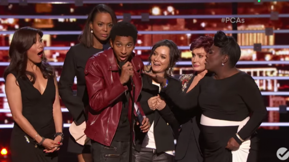 The most talked about incident that happened on this year’s PCAs was the stage crasher that interrupted the ladies of The Talk who were accepting their award for Favorite Daytime TV Hosting Team. Somehow this stranger got on stage, shared his name, and gave a shout out to rapper Kevin Gates. Sharon Osbourne immediately began kicking him in the butt until he finally got off stage. Everyone was very shocked and confused, but that didn’t stop the ladies from proudly accepting their award.