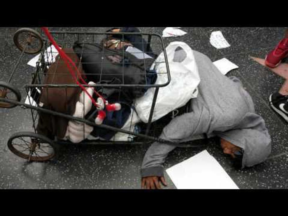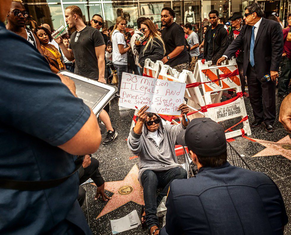 The more alarming part of this incident, however, is that a homeless African-American woman peacefully protested the destruction of this star and got brutally mauled by Clinton supporters. While protesting near the star, this woman held a sign saying, "20 million illegals and Americans sleep on the streets in tents. Vote Trump." This was totally peaceful, but it quickly became violent. This violence is ridiculous and not getting nearly enough media coverage.