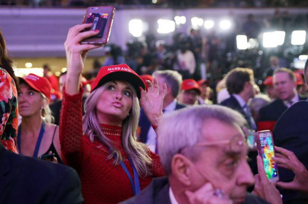 A woman takes a selfie after Donald Trump won the Republican Nomination.