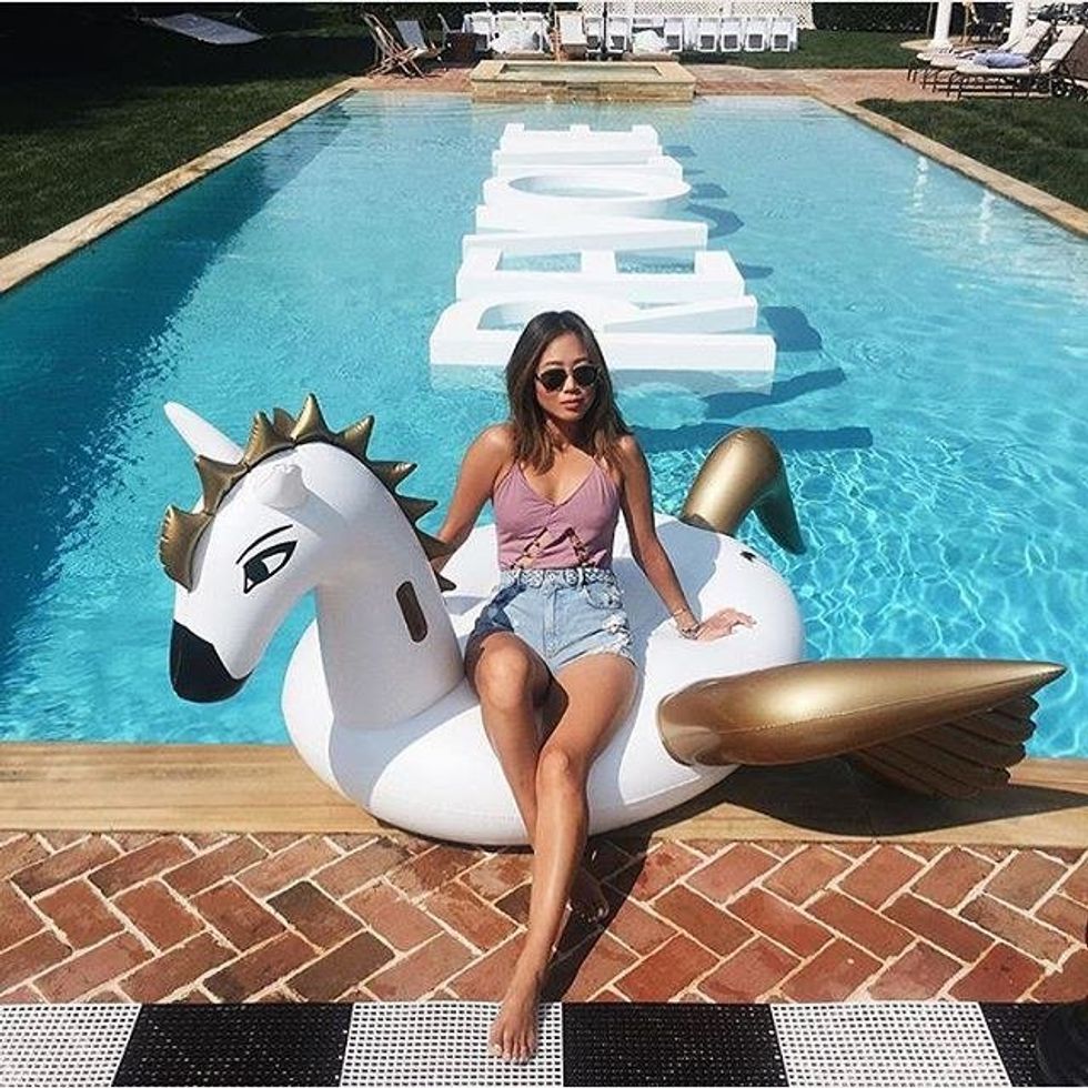 over social media swan floats have been the pool essential for this summer and are so much fun to lay out in the sun with. They have really cute ones on funboy.com. I personally love the cherries and the black swan float.
