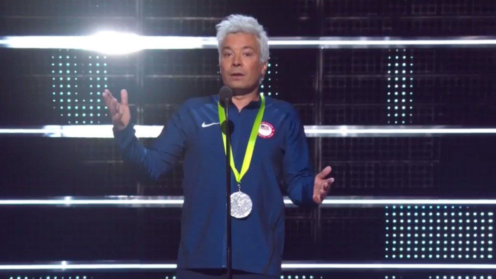 Jimmy Fallon presented video of the year, but not as Jimmy Fallon. He kind of sort of may have dressed up as Ryan Lochte. What may be best of all is how Michael Phelps responded to this. He was laughing and was even taking pictures of the act.