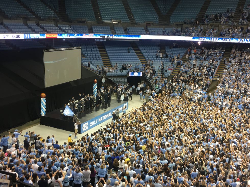Fast forward eight years. I've been through the multiple degree/major changes, numerous student organizations, and so many lasting friendships. I've been to a UNC-Duke game in the Dean Dome, competed on the varsity DI level with the UNC rowing team, and graduated in 2013 inside Kenan Stadium. I've suffered through the UNC-Villanova game with my Carolina family, and I celebrated our 2017 victory in the Dean Dome and on Franklin Street.