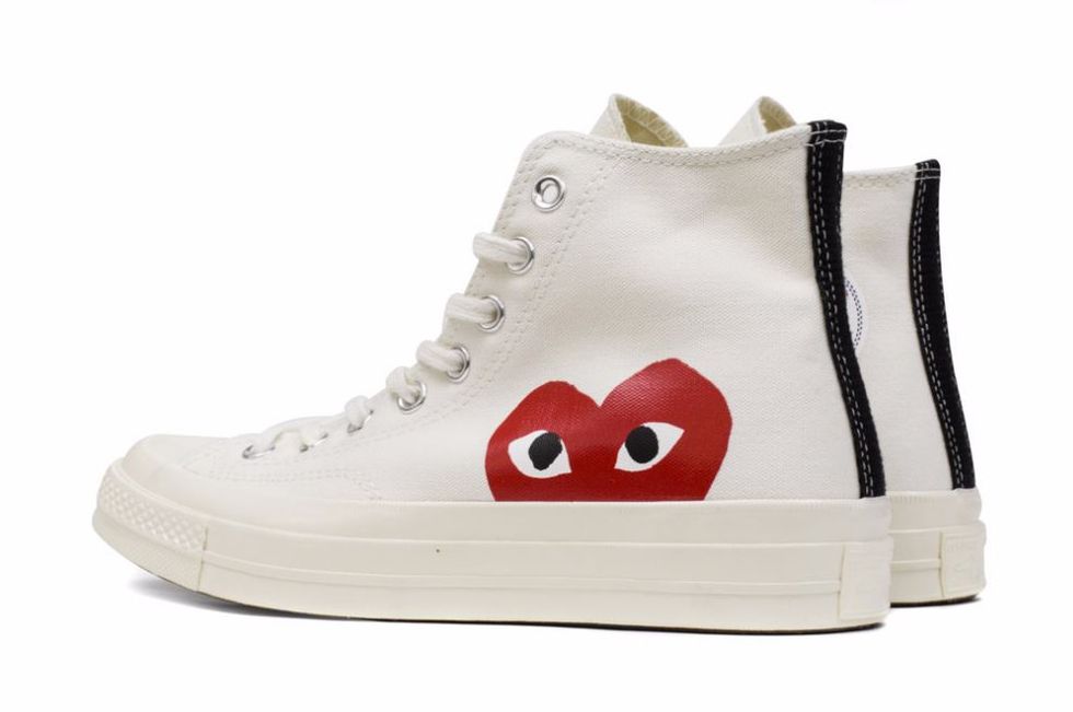 Even though this collaboration is not new to the sneaker market, this collaboration did come out with a new sneaker for 2017. The first product is the CDG rubber logo of a cutout heart peaking over the sole on the side of the shoe. This product is available in white and black Converse, with a red heart CDS logo. They also came out with another version of the product, “Black and White.” These products feature the original Converse with all black styles or a unique combination of a Black/White color scheme. These products are available at Nordstrom and Barney's for $125.