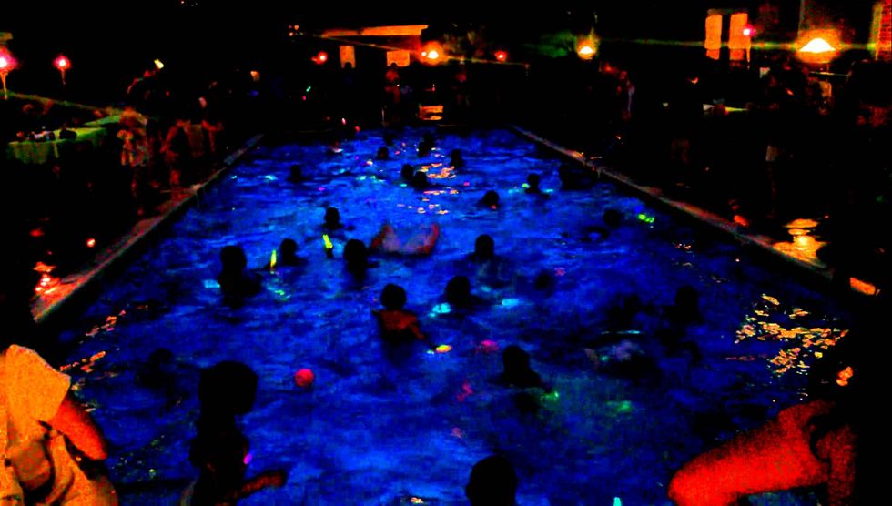Gather up all of your friends and get yourself some glow sticks from the store. Crack them open, throw them in the pool once it's dark outside, and swim the night away with your friends.