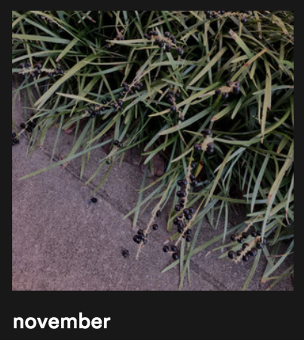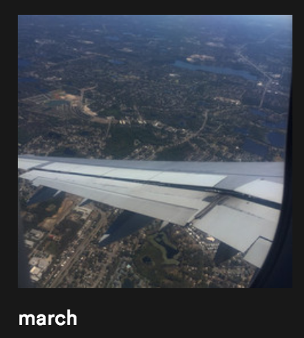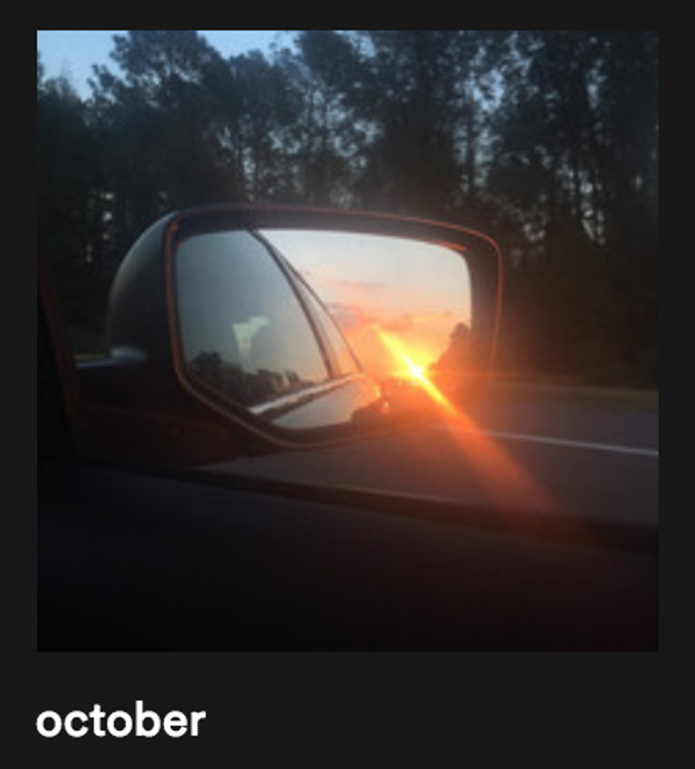 I have curated 12 playlists over the past 12 months that show progression and change in my music taste. The songs are also associated with memories made that month, which allows me to remember the 4 weeks in an entirely different way, as opposed to through pictures or writing. Each playlist has a cover picture that I took during that month to further contribute to the memories as well. The playlists are quite long, so here is a list of my 5 favorites from each month.