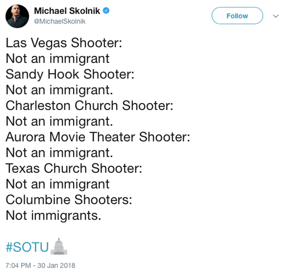 Most importantly, there was no acknowledgment from Trump that despite his perception that illegal immigrants are the sole terrorists in our country, there are many homegrown terrorists who are responsible for shootings and violence over the last couple of decades in the U.S.