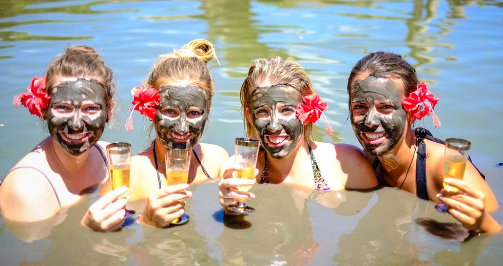 Have a relaxing day at the spa with friends. Pop a bottle of champagne to celebrate while having a soak in a mud bath.