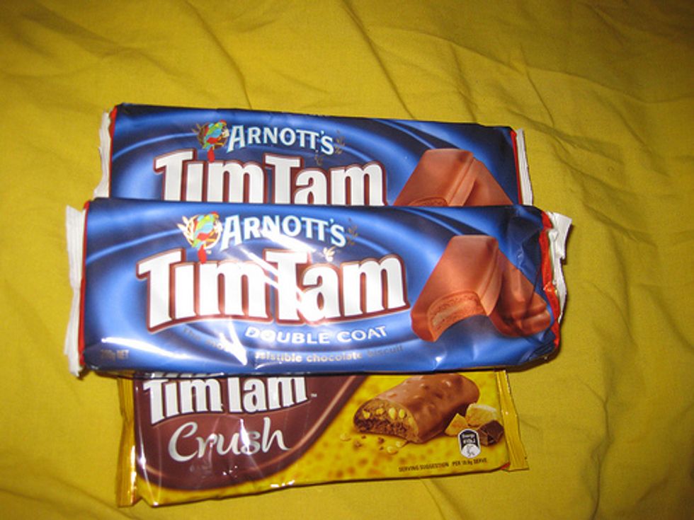 TimTams are chocolate cookies/biscuits which are the most delicious things ever. Americans are seriously missing out.