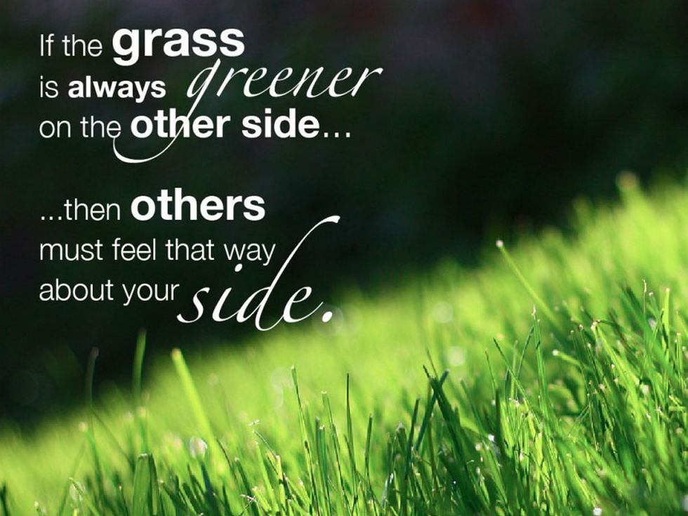 1. The grass always seems greener on the other side, but that doesn't mean it is.