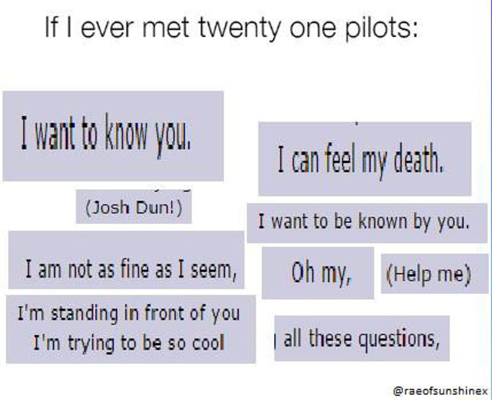 Twenty Øne Piløts might be a serious band, but they have some pretty hilarious fans. I scoured the Internet to find some of the funniest memes that refer to TØP to perhaps make some people smile today. (Or, you know, not.)