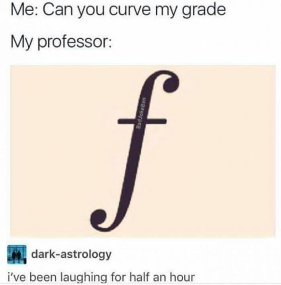 And it's not always our fault either. Sometimes professors really are just bad and we tried our best. For example, I made a 4.0 my first semester and now I'm struggling with 3/5 classes at D's and C's. Two of those professors are exactly what this graph describes and more.