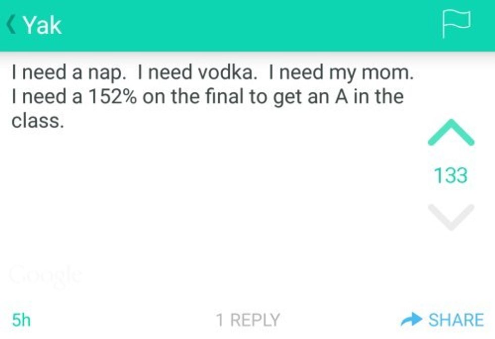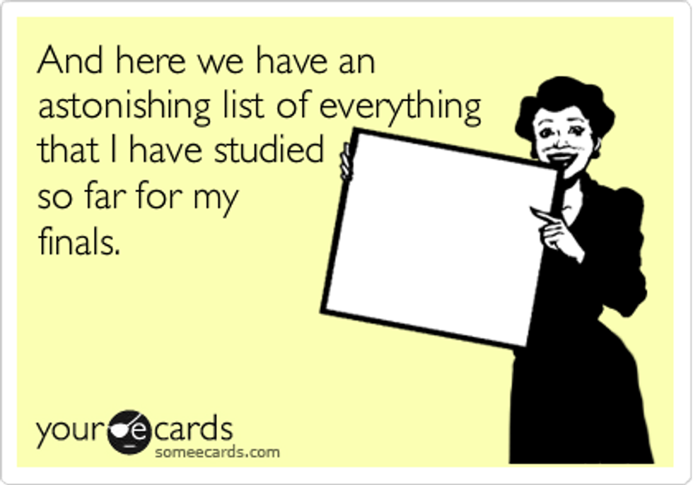 Finals can be super hard to get through, I know. So here we have some funny and very truthful pictures to help get you through the week, whether you're sleep deprived and find everything funny, need motivation, and/or need a good giggle...