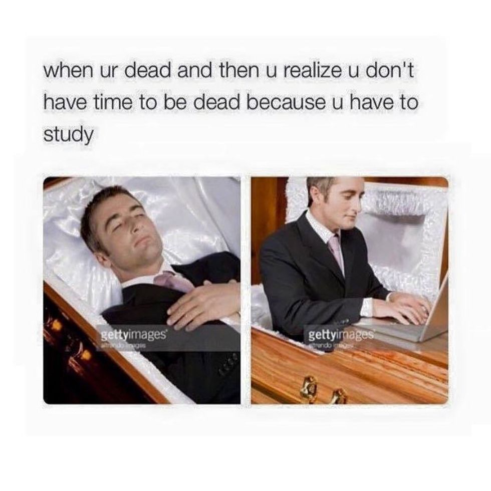 When you got three hours of sleep and start arguing with the Grim Reaper about why he hasn't taken you yet and all he says is, "You have a final at 8."
