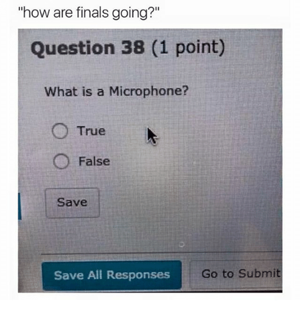 Finals! It all makes sense now! All the professors are aliens! It's a great conspiracy; it's the truth! The system is RIGGED!