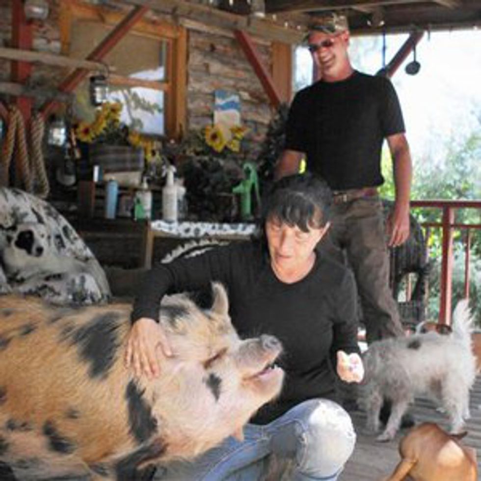 11. They talk about rescuing 10 cats, four dogs, two pigs, a cow, and one of every species of mammal.