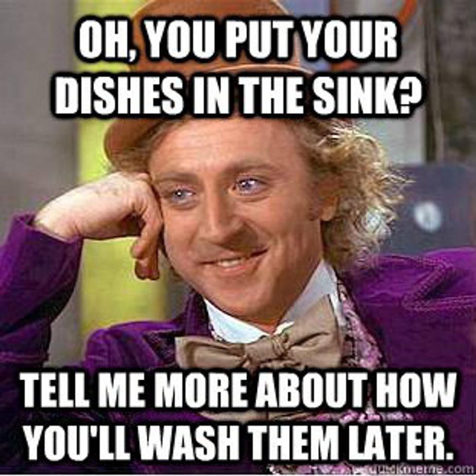 18. Deciding who left dirty dishes in the sink can be a challenging feat. You occasionally argue about it, but someone eventually breaks down and ends up putting them in the dishwasher.