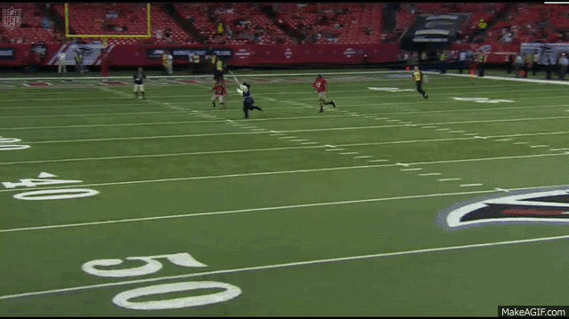 Freddie Falcon is not the most well-known NFL mascot, but he deserves to be up there. He's hilarious and has to be seen to be believed. Here he is tackling a buccaneer, because why not.