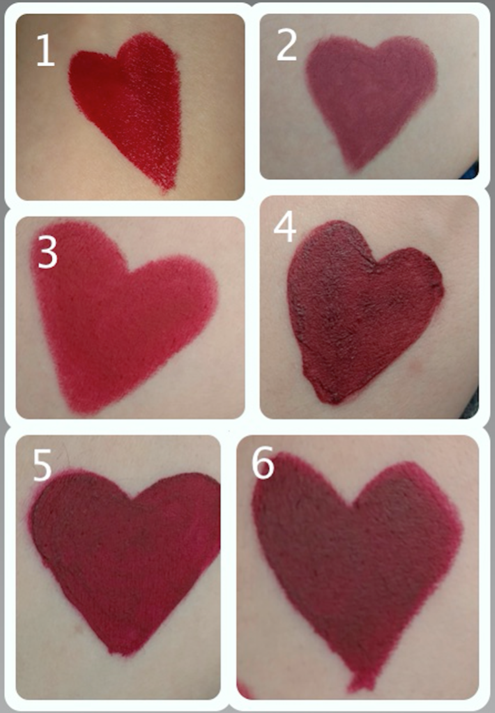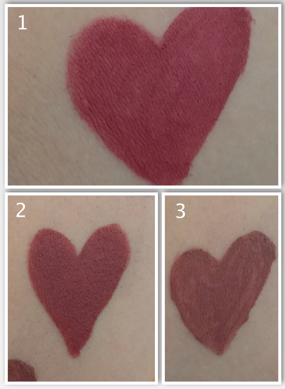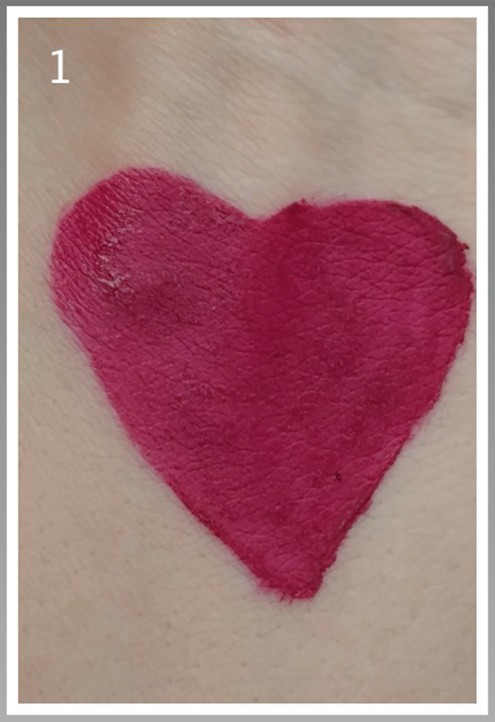 N.Y.X. Slip Tease in Bang Bang is a very different mauve and red mixture. It goes on like an oil, but dries down to a powdery, dimethicone feeling finish. (Picture 4)