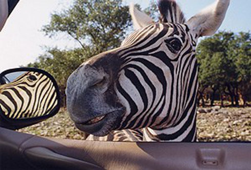 On the outskirts of San Antonio, Texas is the Natural Bridge Wildlife Ranch. Here animals such as emus, giraffes, ostriches, and zebras roam in a protected environment and you are able to drive right by them, and if you are lucky a zebra will put its head in your car.
