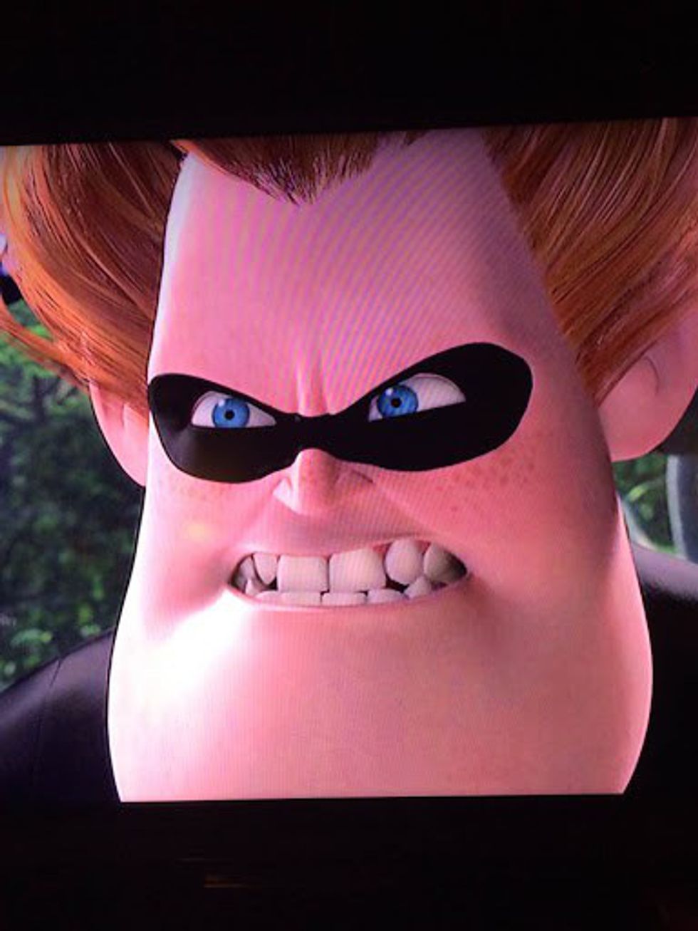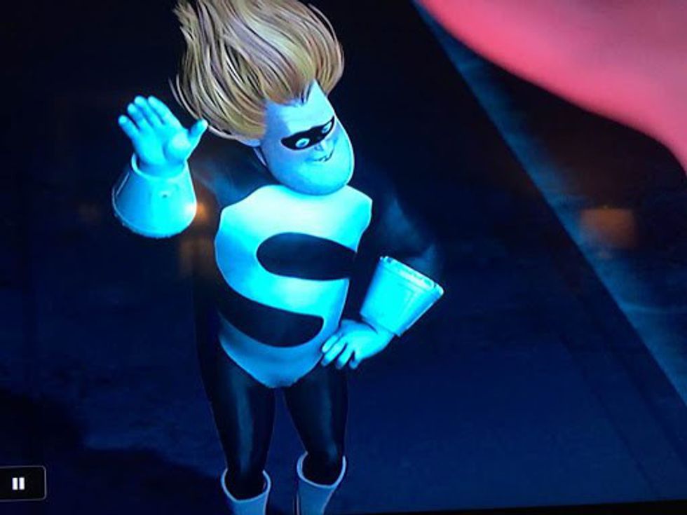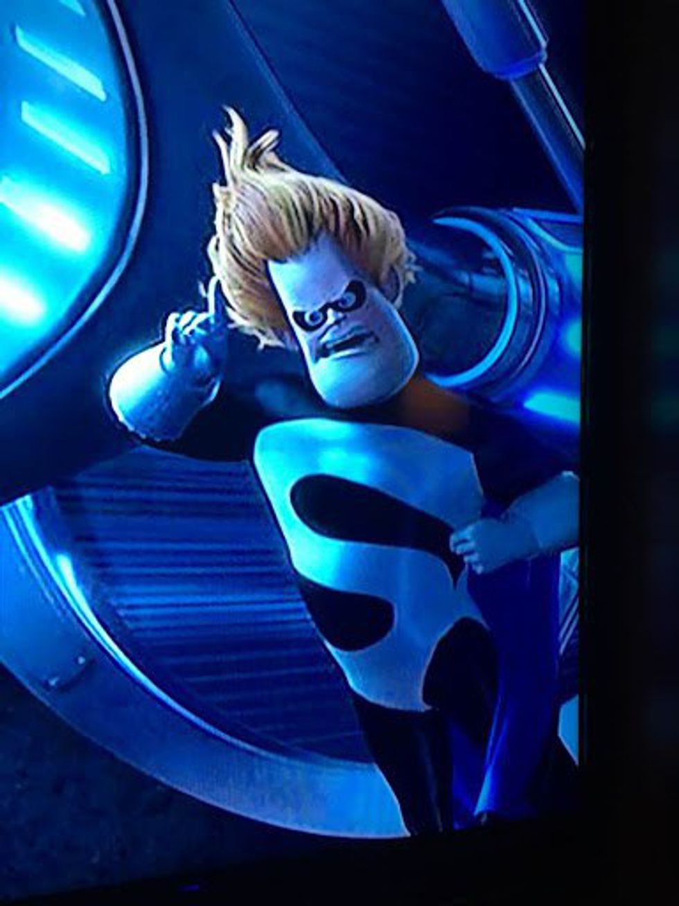 After having the pleasure of viewing this masterpiece over spring break, I couldn't help but notice, after pausing the movie to get food, the hilarity of Syndrome's frozen face in frame--a dynamic snapshot of exaggerated emotion--on the screen.