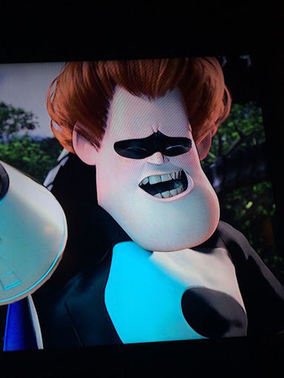 With the remote-pausing finesse of my boyfriend, we made it through the rest of the movie, pausing on Syndrome's various faces to capture his wild expressions. We eventually came to decide that he was perhaps the most expressive character in the movie.