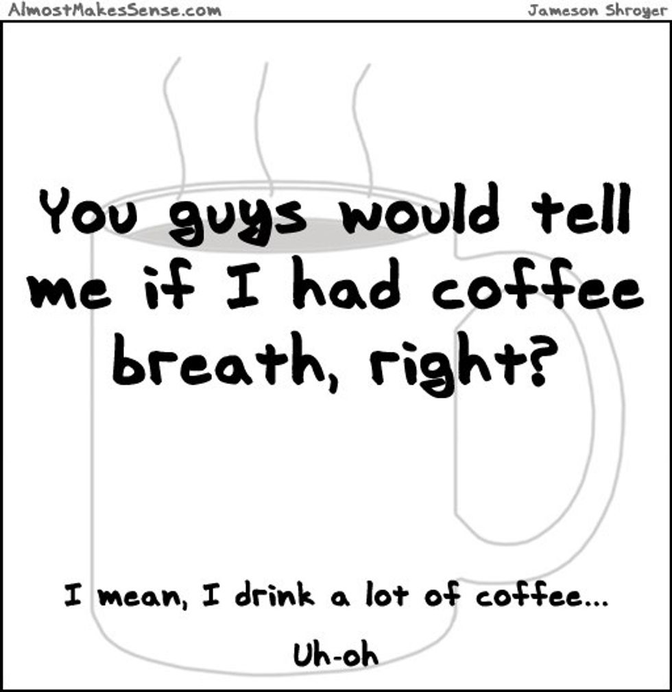 Aw, did you have a bad day? Do you feel like you missed something? I know that feeling, when you feel like the world is on your shoulders and you just want to scream at anyone who wants to talk to you and disrupt your peace, because you're just tired and it didn't even hit noon? Well, that's because you missed your morning cup of coffee. Or perhaps, if you're like me, your triple shot espresso. I am a coffee addict; just like real knows real, addicts share similar habits. These are 22 of the best reasons why you might be compulsive towards coffee, but you are sure to have your own.