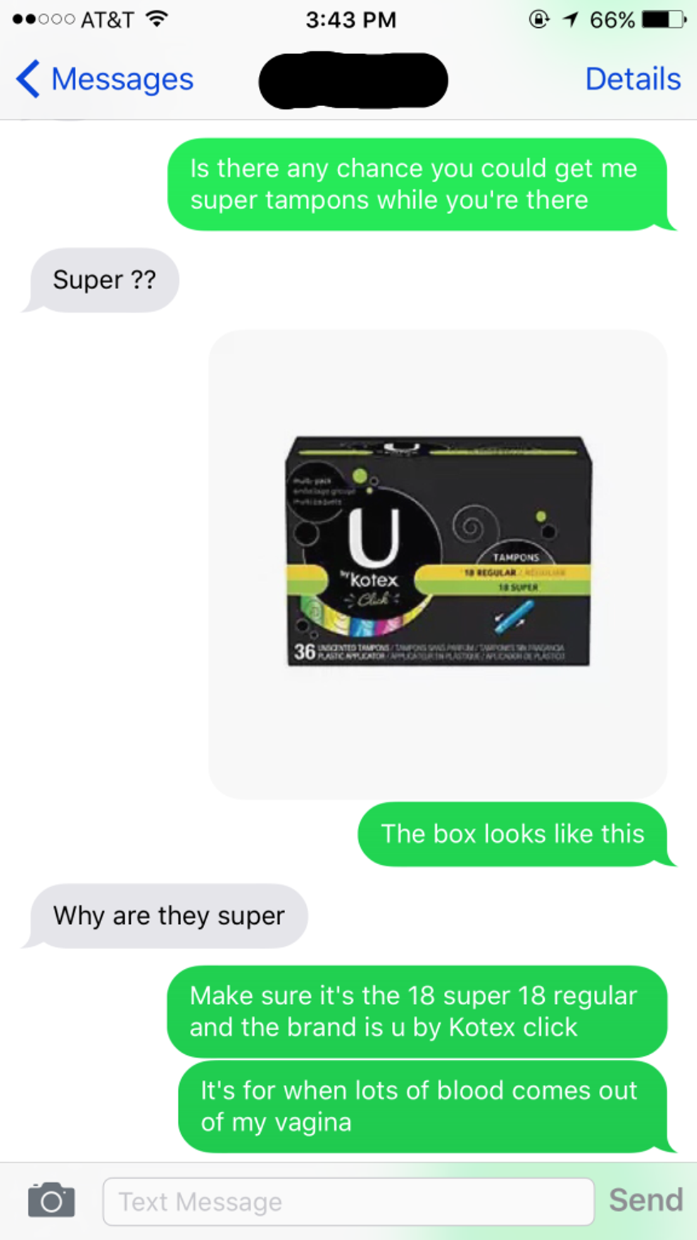 Don't have to pee, just need to change my pad or tampon so that I don't get blood on my pants or underwear...