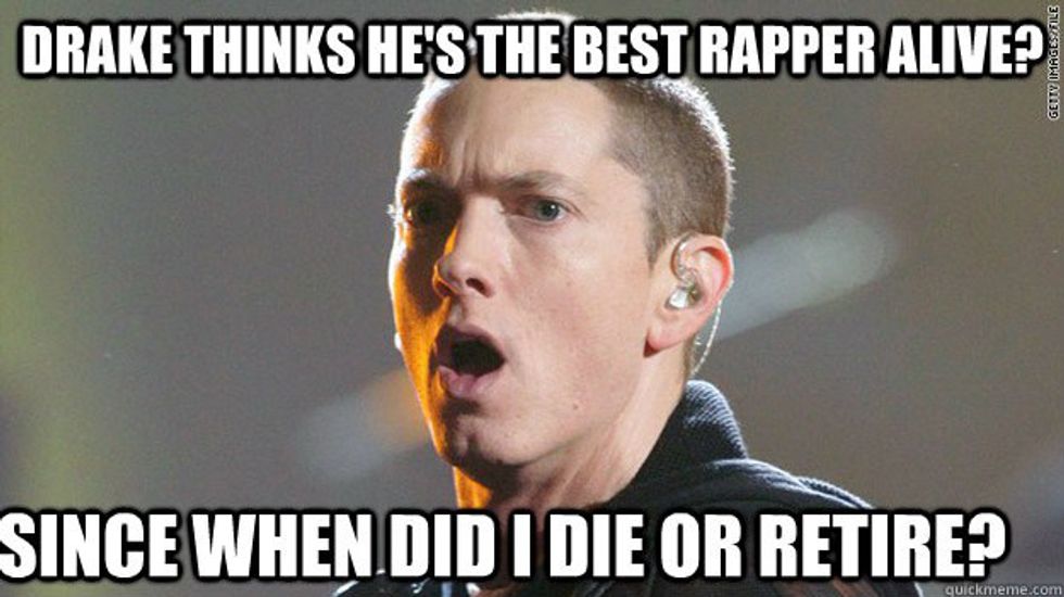 Due to the interview, many people fell under the impression that there was going to be an epic rap battle between Drake and Eminem. Even though signs are currently pointing to the other direction, it is widely believed that Eminem would crap all over Drake in a rap battle, if it actually became a reality.