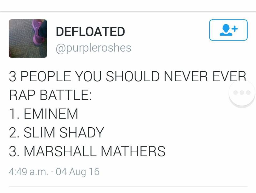 In the spirit of this nonexistent rap battle, I have compiled a list of 22 things that would probably happen before Drake beats Eminem in a rap battle.