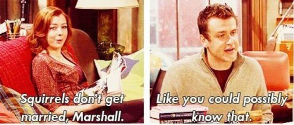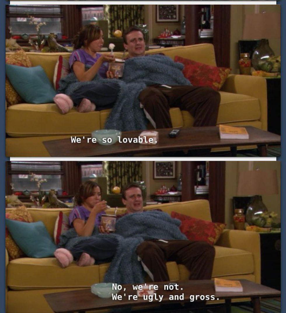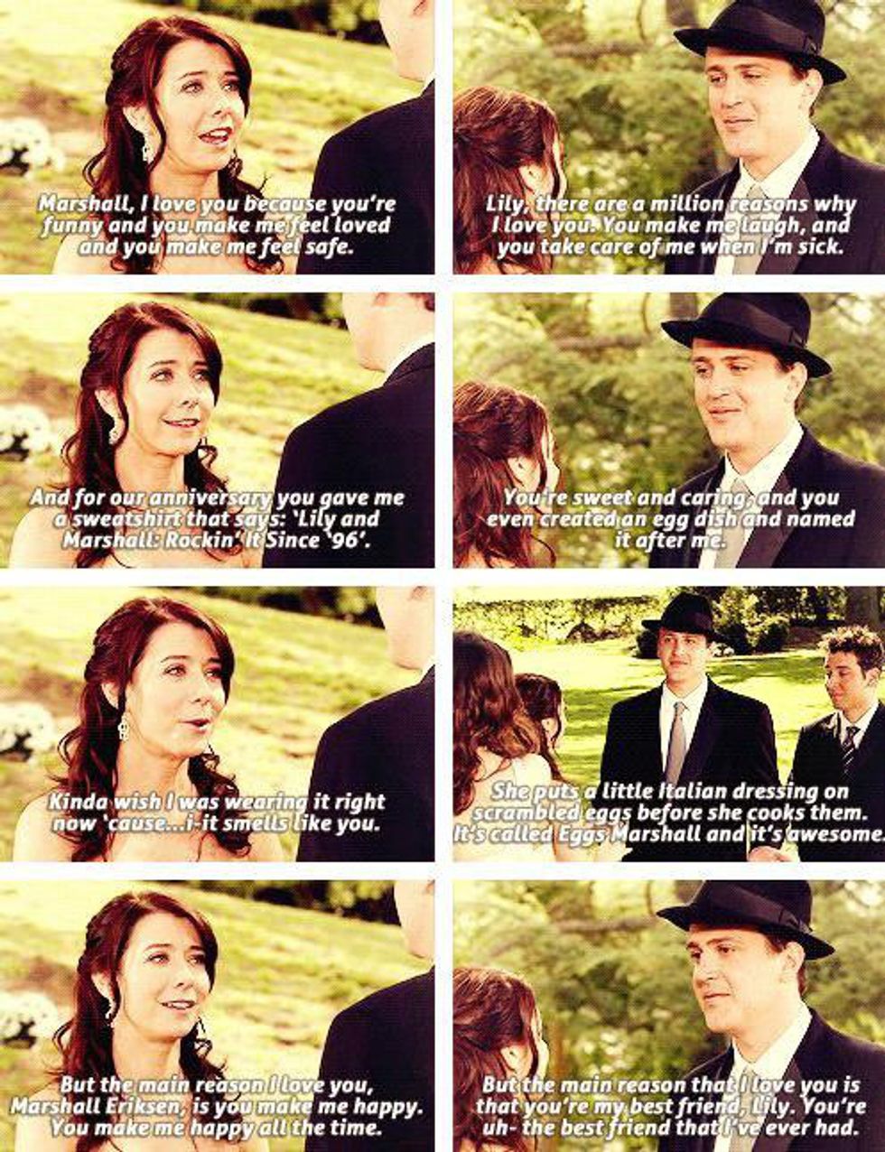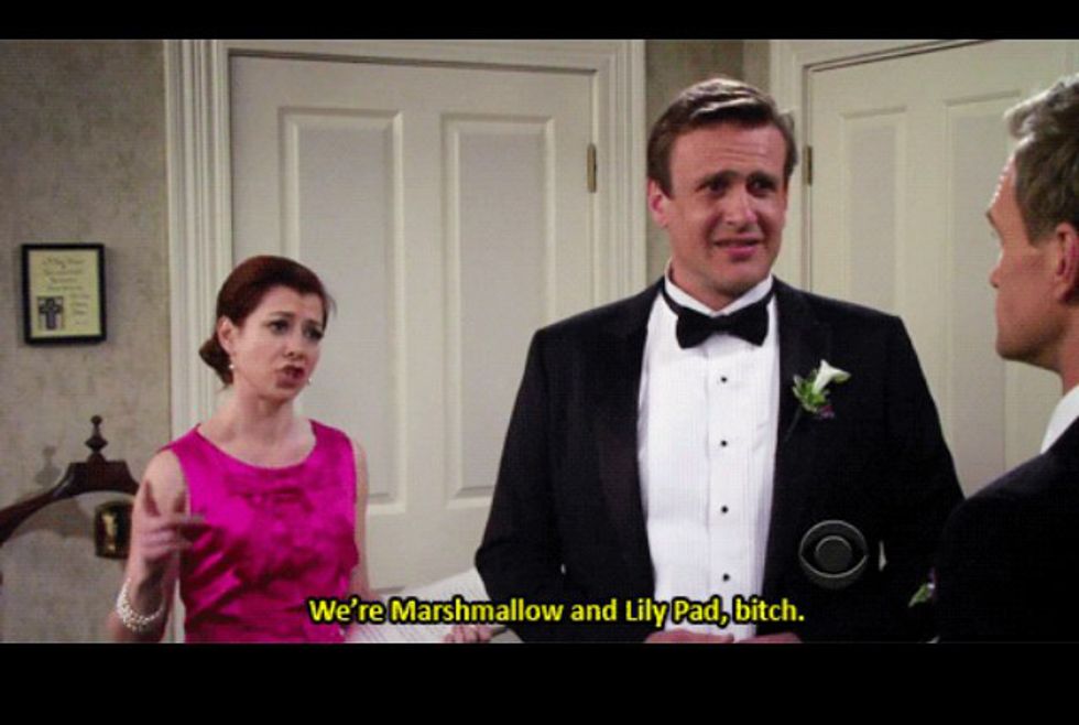The final episode of How I Met Your Mother aired in March 2014, but if you're huge fan of the show like myself it'll always hold a special place in your heart. If you've never watched, stop what you're doing right now and go binge watch all 9 seasons on Netflix. You won't regret it. It's hilarious, relatable, random as hell, full of life lessons, and always knows how to hit you right in the feels. Especially when it comes to Marshall and Lily's unfaltering, unconditional love for one another from the first season to the last. Seriously these two could turn even the most bitter person into a romantic. So I decided to compile a list of my favorite Marshmallow and Lily-Pad moments to prove why they're actually "Relationship Goals".