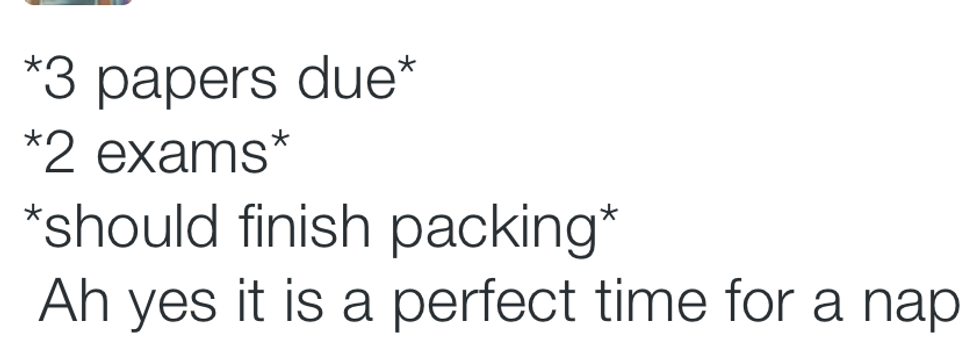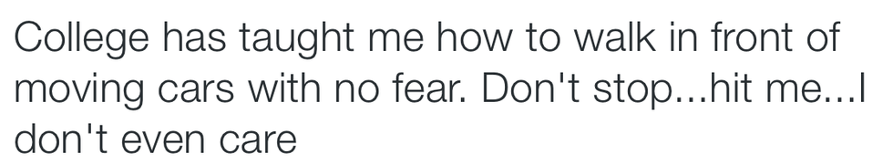 Twitter is the social media platform where people never fail to speak their minds and tell the world how they really feel. This results in some pretty hilarious, relatable and surprisingly accurate tweets. So in honor of the fact that I'm kind of already over summer break and ready to go back to school, I decided it would be a good idea to compile some tweets about the struggle that is college life to remind myself to enjoy these few months of summer break.