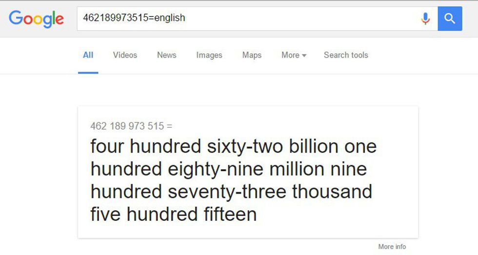 When you see something like "462189973515," your first instinct would to probably be to put commas in it, and then read it from there. 462,189,973,515. But, if you want to know how to say it, put it into Google. It'll be a mouthful, but you'll probably impress your friends.