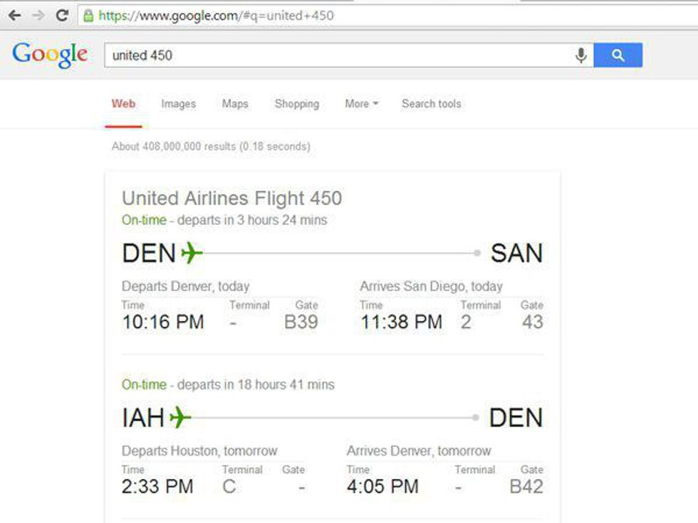 If you or someone you know are travelling through the air, and you want to know their status, go into Google and enter a flight number and airline, and it'll tell you immediately what it is.